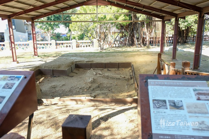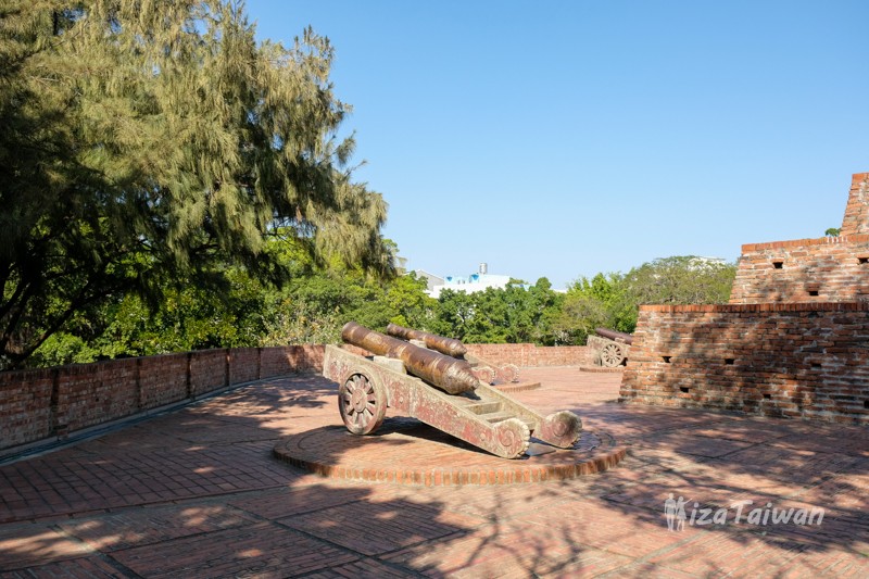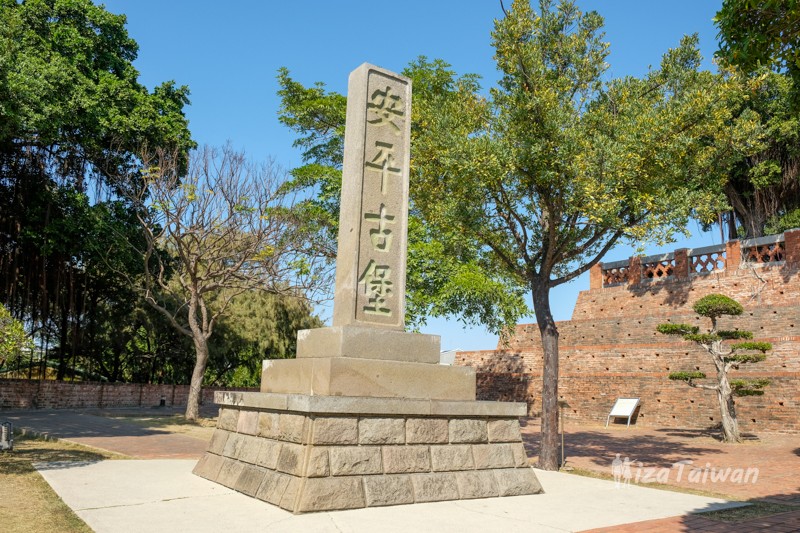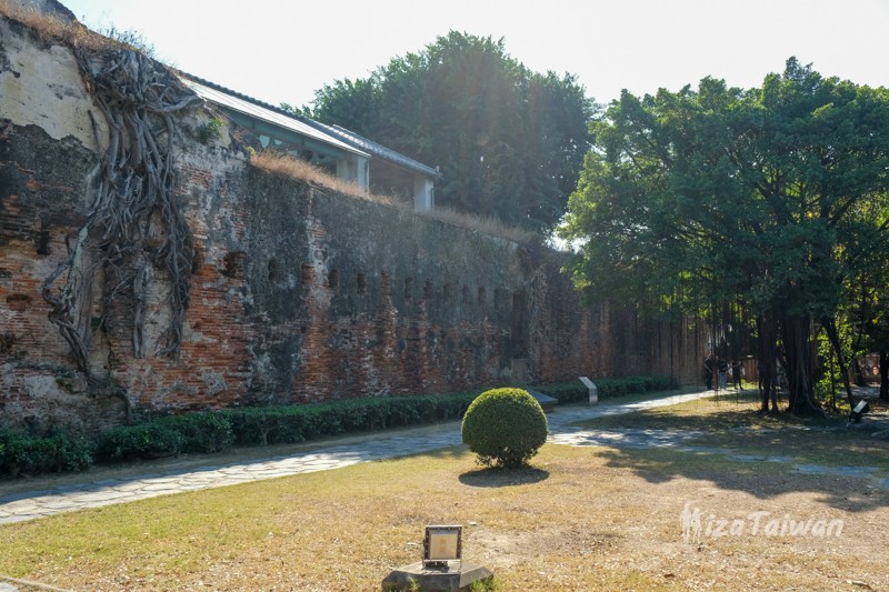 荷蘭時期遺跡像是位於古堡前方,是目前僅存、最能代表荷蘭時期的古城牆,老榕盤根錯節其上,充滿滄桑感。紅磚糯米牆為荷蘭時期建材是從巴達維亞運來的紅磚,並以糯米汁、糖漿、砂與牡蠣殼粉調製成的三合土砌築,俗稱「糯米牆」或「紅毛土」。壁鎖 (鐵剪刀)在殘牆上仍可見,是當時為鞏固樑壁、防止結構傾斜而設置的金屬構件。