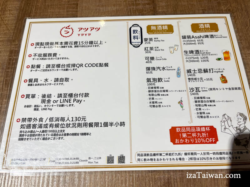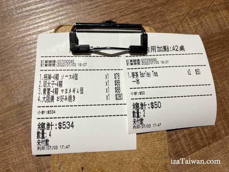 分享一下這次的帳單,佛心的アツアツ是不收取服務費的。