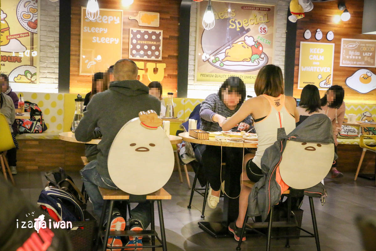 進到餐廳內,目光順間被椅子吸引,就連椅背也是精心設計過,更別說餐盤了,簡直是每個角落都是蛋黃哥的影子。