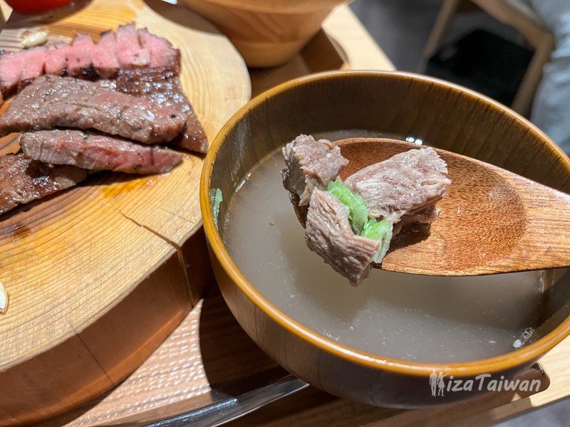 牛舌湯為慢火熬煮湯底,濃縮牛骨與舌肉精華,帶有蔥香與鮮甜。白飯可續,點餐時也可另外加價升級成鮭魚卵生蛋黃飯。