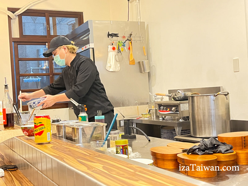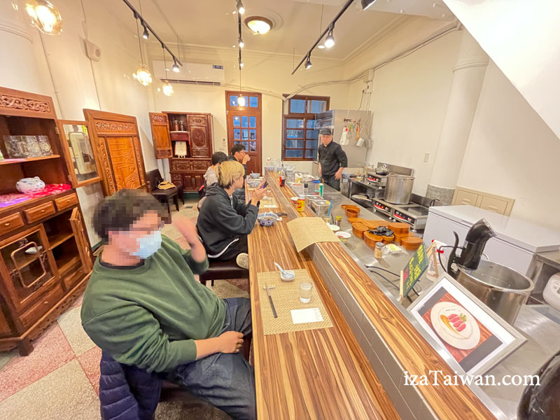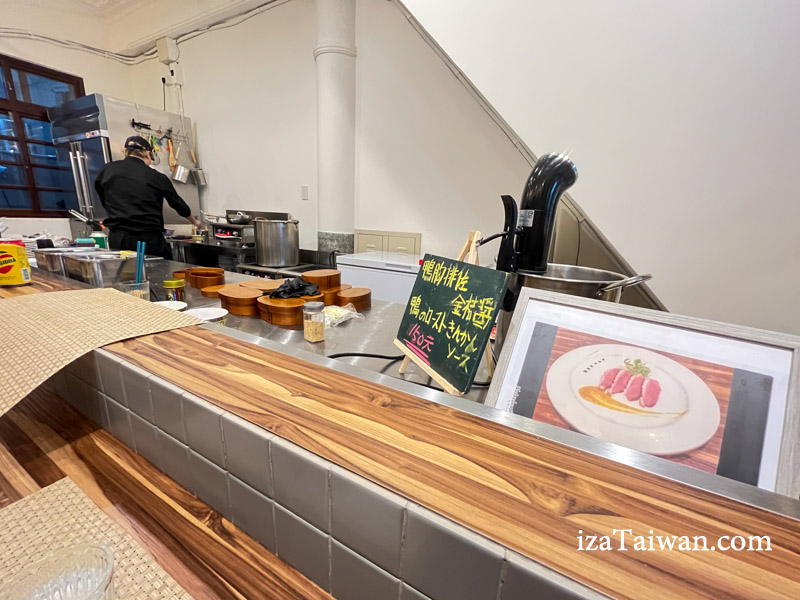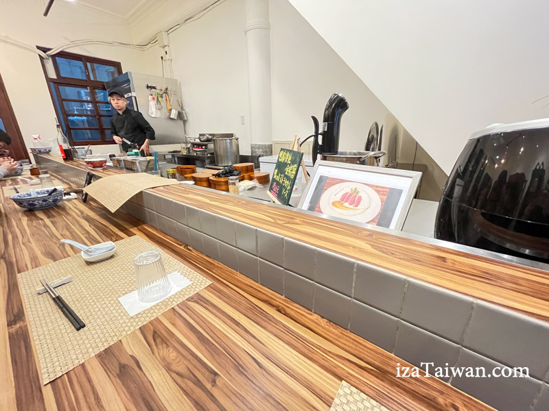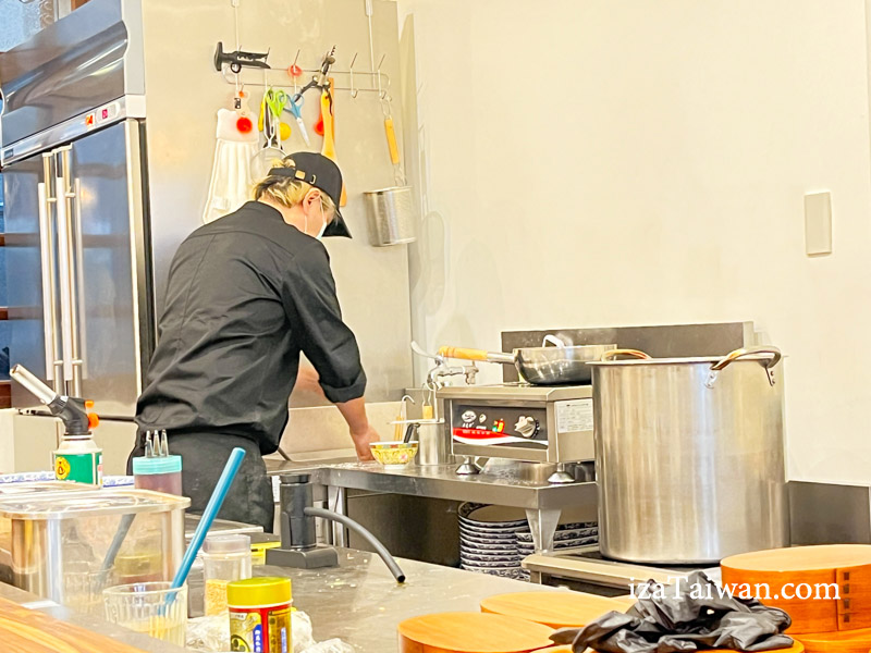 開放式廚房讓空間看起來更寬敞,採用拉麵店式的吧台座位,座位數不多,僅有六個。