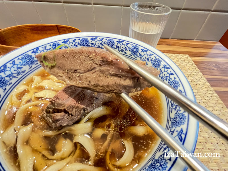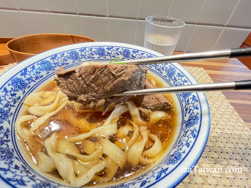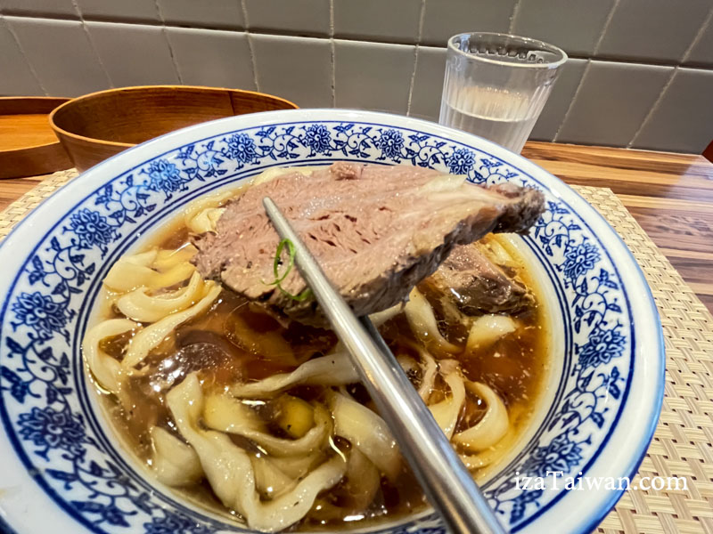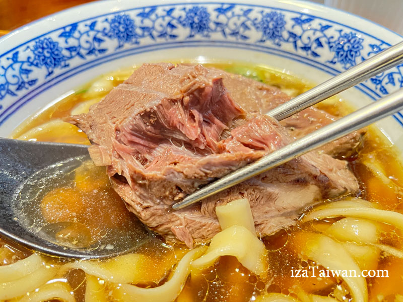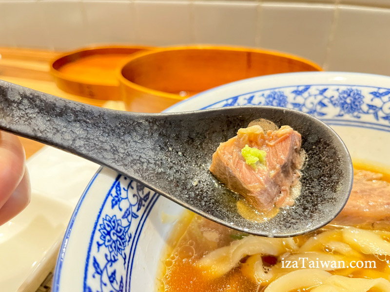 牛肉也超厚超大塊,讓人一度懷疑是牛排麵。這厚實的牛肉軟嫩入味,用筷子就能輕易夾斷,湯汁完全融入牛肉之中。如果覺得兩大塊牛肉太多,點餐時可以告知服務人員只要一塊肉就好,價位也會有所不同,這是隱藏版菜單!