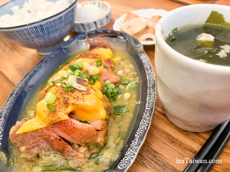 這套真的很推,很下飯,而且雞腿也非常入味,感覺像是煙燻雞腿,完全不柴,加上上面炙燒過的起司片和整體味道及醬汁都真的很搭,女孩們也不用擔心吃相不好,因為店家很貼心的是使用去骨雞腿。