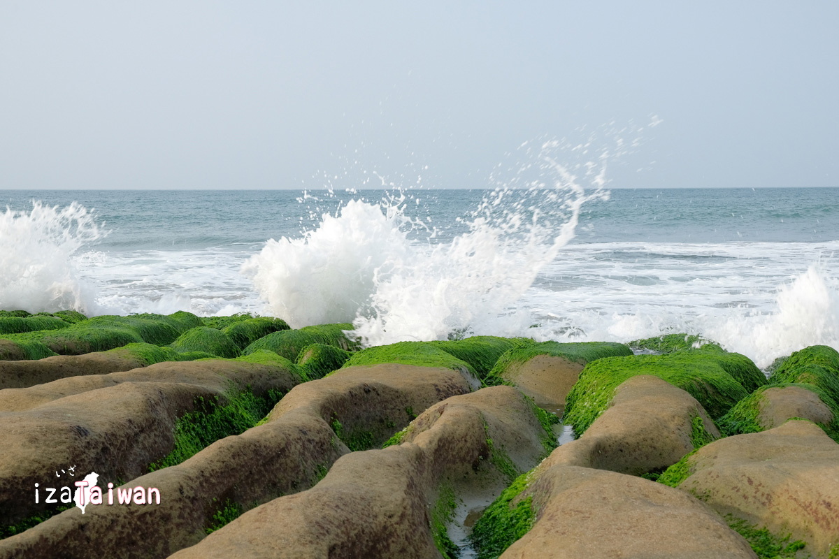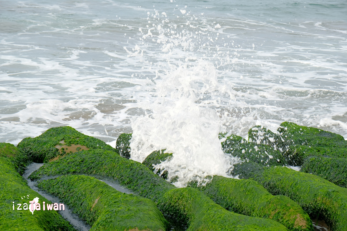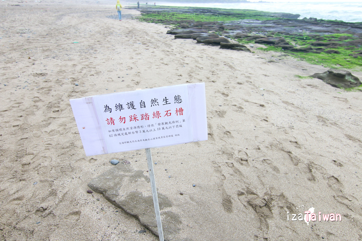 然而,這片由海藻生長所造成的天然美景,近年來受到暖冬效應和人為踐踏的威脅,面臨生存危機。綠石槽非常濕滑,容易滑倒受傷,請勿踩踏石槽,破壞生長環境,建議在沙灘上欣賞,共同維護這珍貴的自然生態,避免滑倒受傷。