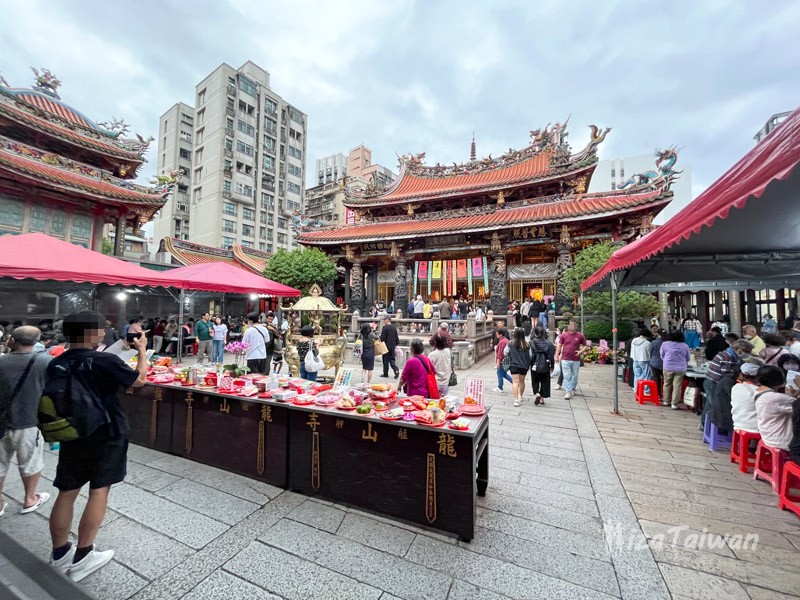 參拜龍山寺有一定的規矩,一般從前殿開始,依序參拜各殿的神明(不可逆行祭拜路線)。參拜時,可以準備香、花、果等供品,並誠心祈求。在祈求時,要清楚地告知神明自己的姓名、生辰、住址以及所求之事。此外,龍山寺也提供籤詩,讓信徒可以透過抽籤來尋求神明的指引。