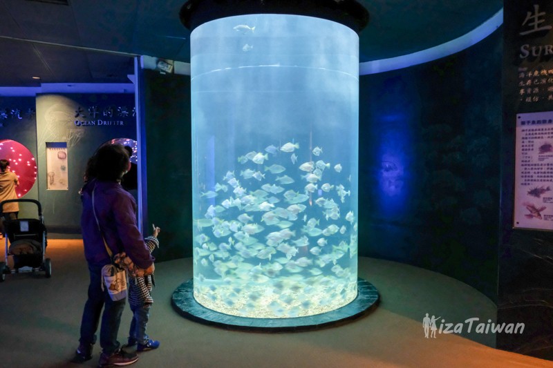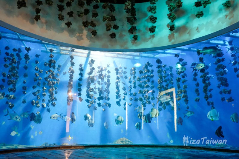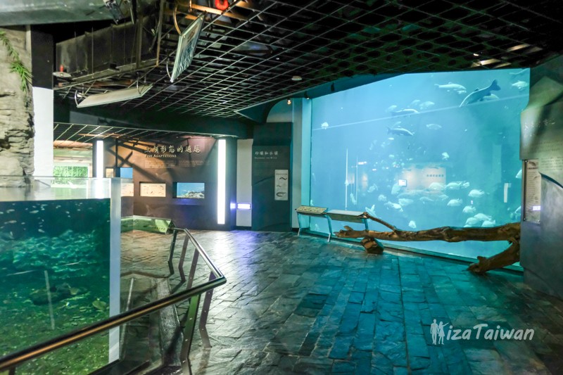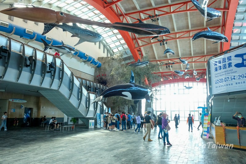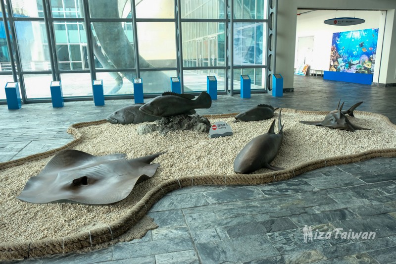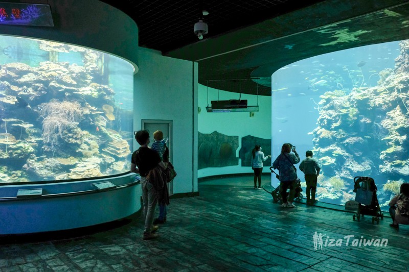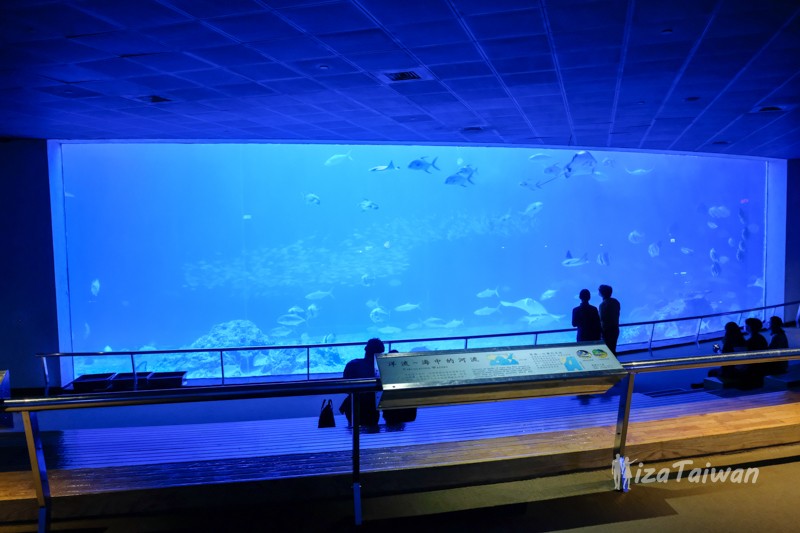 台灣水域館:展示台灣周邊從高山溪流、河口到近海、外海,呈現臺灣周邊多樣水域生態,並設有100萬加侖的大洋池與餵食解說活動。