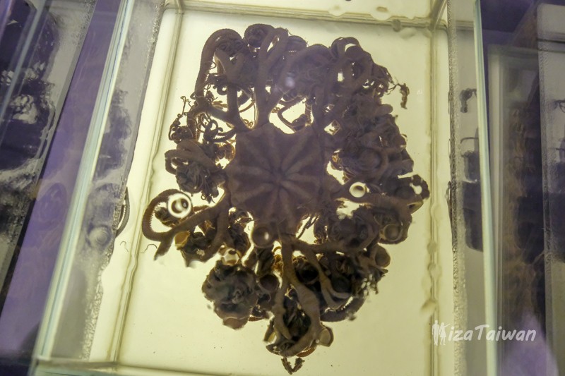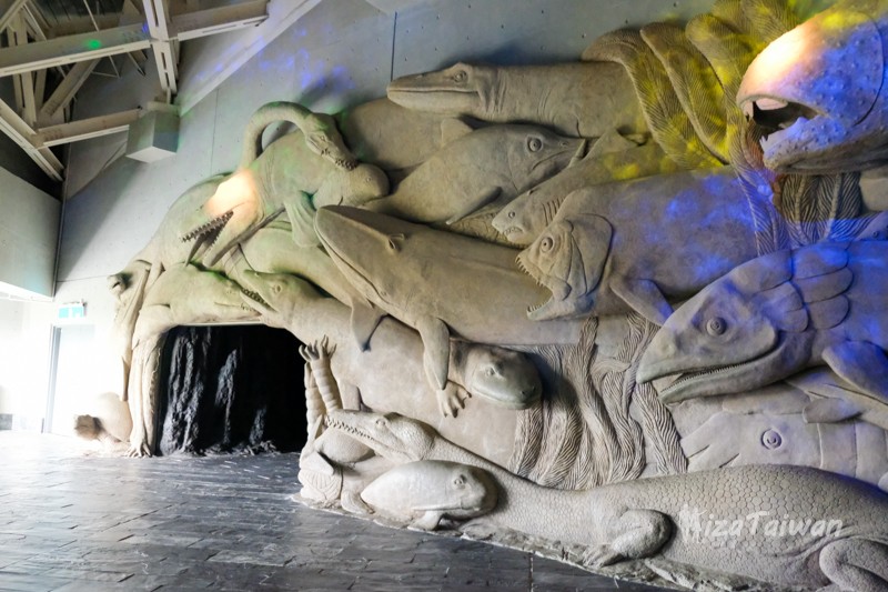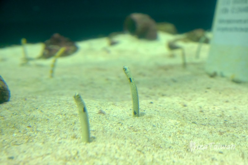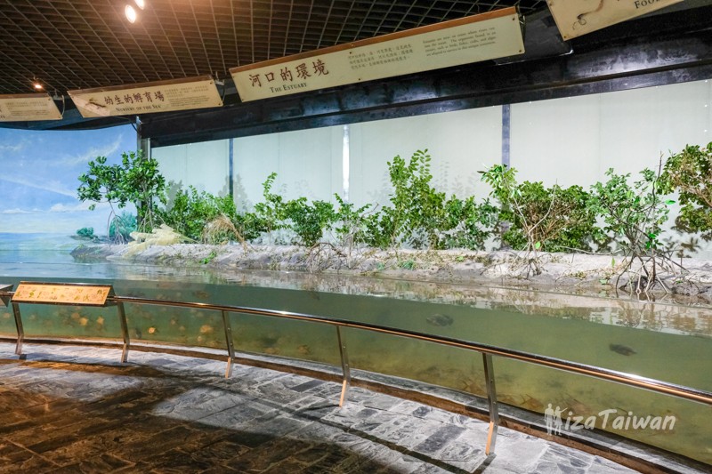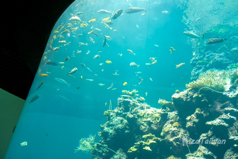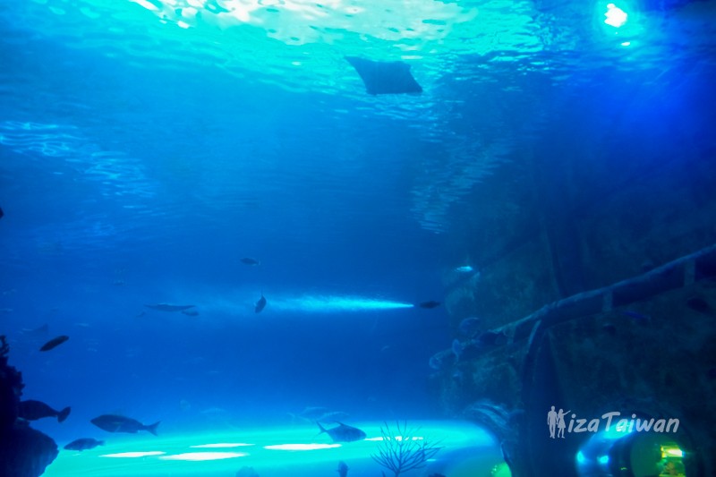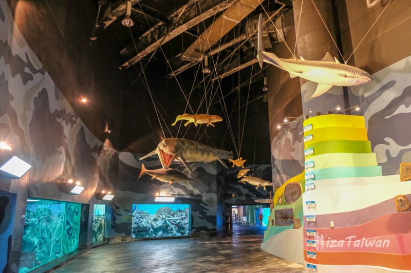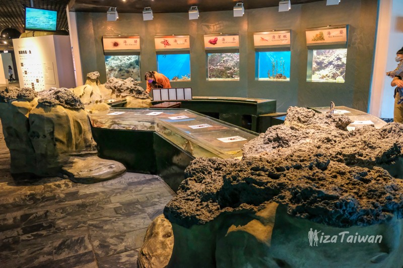 台灣水域館:展示台灣周邊從高山溪流、河口到近海、外海,呈現臺灣周邊多樣水域生態,並設有100萬加侖的大洋池與餵食解說活動。