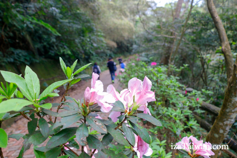路旁有著鮮豔花朵點綴,還有些許櫻花樹站立兩旁,讓步道更加熱鬧。