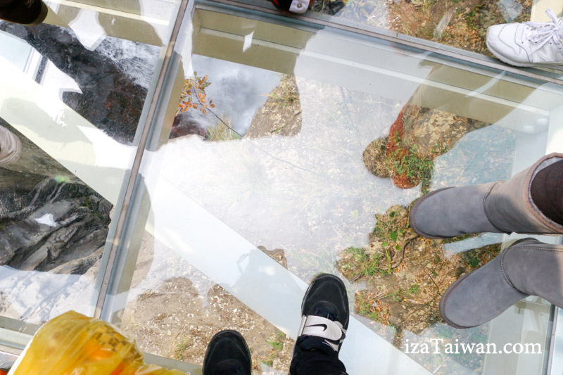 步道底部為強化玻璃的建築結構,凌空伸出11公尺的廊道,遊客只要站上距離瀑布底70公尺高的玻璃平台上,就能居高臨下欣賞小烏來溪谷的秀麗美景,以及氣勢磅礡的瀑布景觀,挑戰360度的全新視野,被稱為大峽谷的天空步道迷你版。