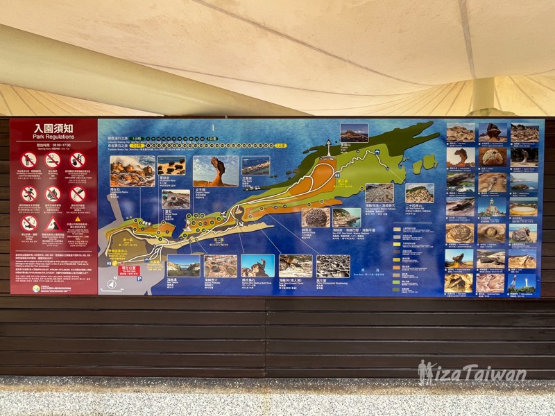 而大約 600 萬年前,因蓬萊造山運動導致歐亞大陸板塊與菲律賓海板塊碰撞,使原本的海底地層被推擠隆起,形成單面山地形。長期風化與侵蝕作用造成多樣奇岩,如蕈狀岩、燭台石、壺穴、豆腐岩等,形成獨特「海蝕地貌」。由於岩石顏色與層理變化明顯,野柳被譽為地球上最像火星的地方之一,是「天然的地質博物館」。