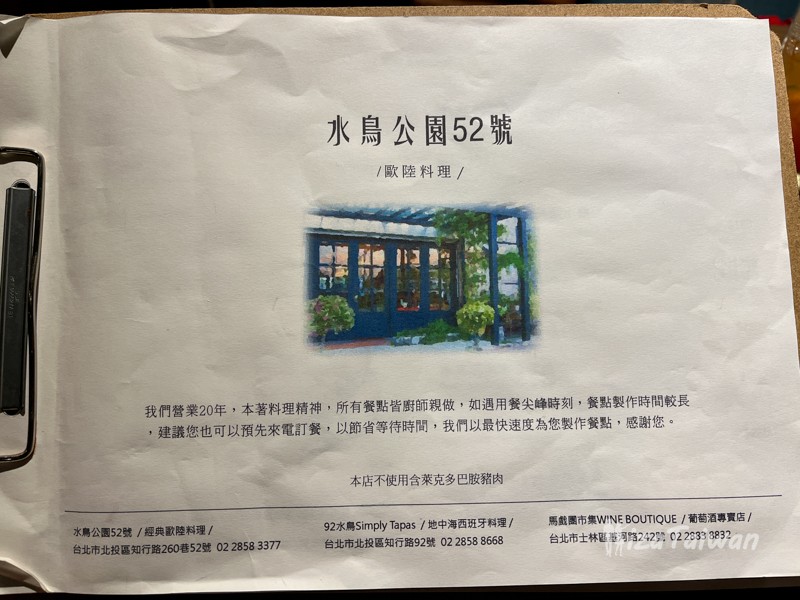Bistro 52, located next to Guandu Nature Park in Beitou District, Taipei, is a continental restaurant renowned for its natural scenery and handcrafted cuisine, making it one of Guandu's hidden gems.