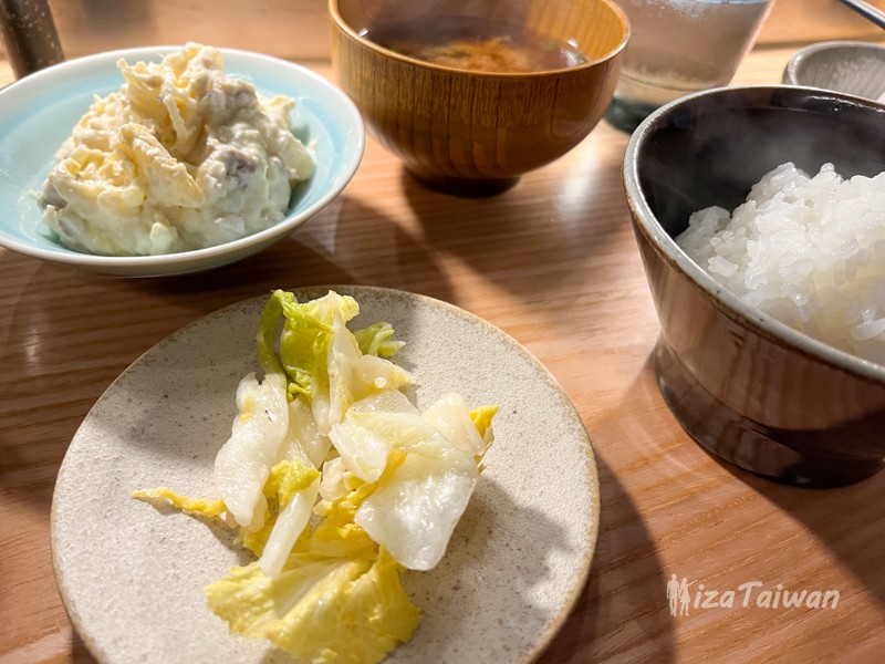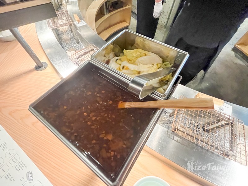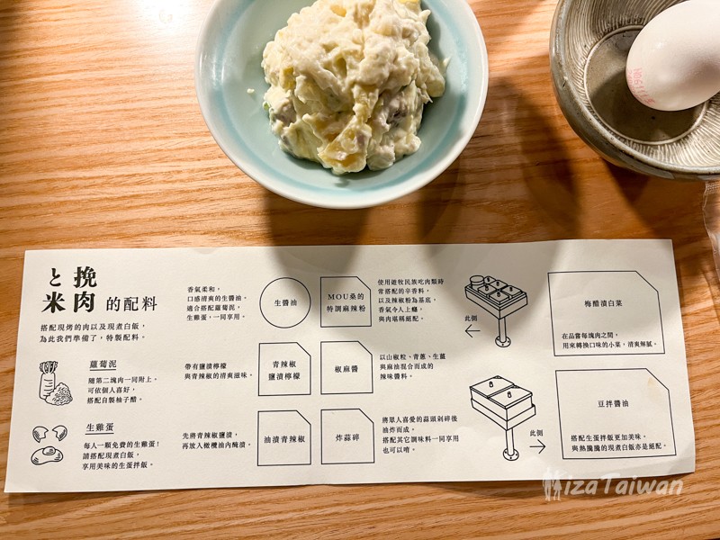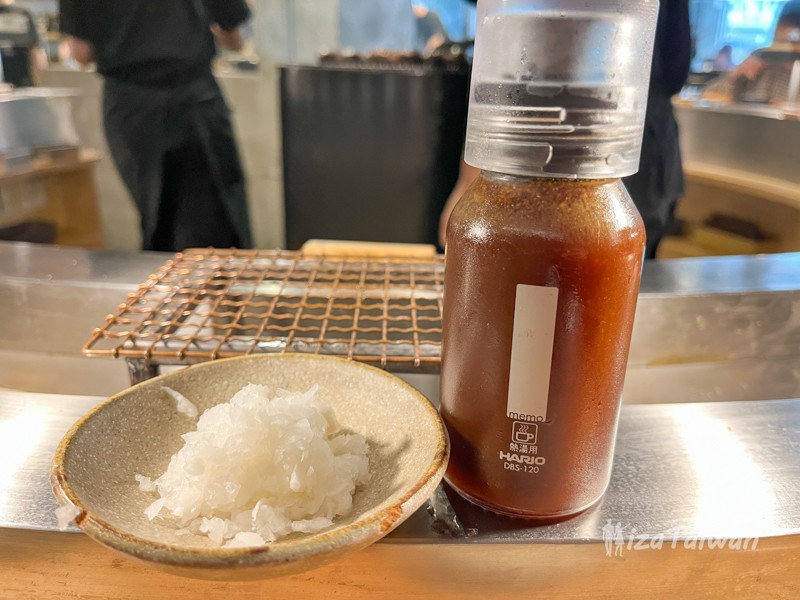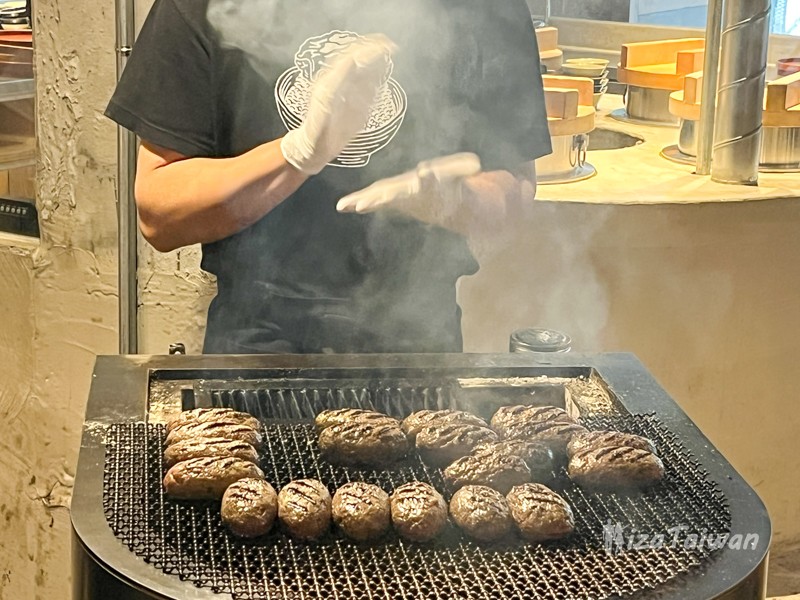 In addition, there are eight special sauces and two side dishes, such as broad bean sauce, pickled napa cabbage with plum vinegar, green chili pickled lemon, garlic oil, and Sichuan pepper sauce, allowing customers to create a variety of flavor combinations. It is recommended to taste the original flavor first to feel the meat juice and charcoal aroma. The second piece can be paired with the store's recommended grated radish and yuzu vinegar for a refreshing and non-greasy taste. The third piece can be made into a hamburger steak rice bowl by placing the raw egg on the rice, enjoying the rich yolk and meat juice blending together for a smoother taste. (Side dishes and drinks can be ordered separately)