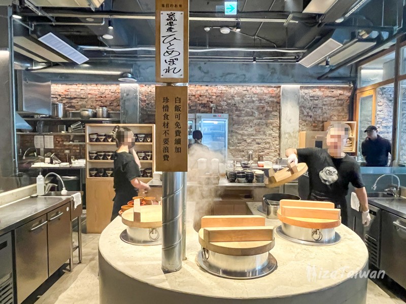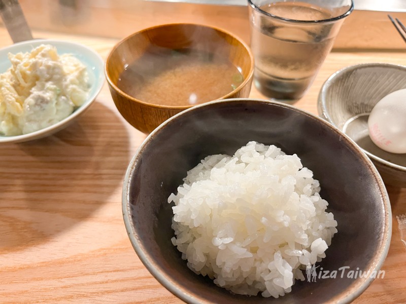 The white rice in the store is cooked in a Hagama pot, with each grain distinct and fragrant, and refills are unlimited. With the concept of a "one-hour feast of meat and rice," dining time is limited to 1 hour, and each person must order a set meal. The set includes three 90g charcoal-grilled Wagyu hamburger steaks, one raw egg, miso soup, and all-you-can-eat white rice (Koshihikari rice).